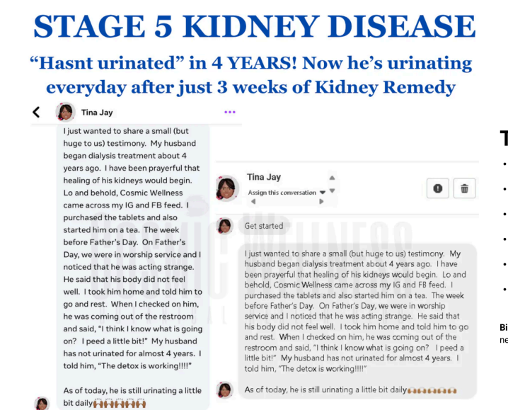 • “Doctors told me dialysis was the only option. After 6 months on Kidney Remedy, my urine flow returned and my nephrologist was stunned.”